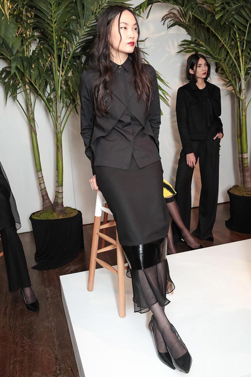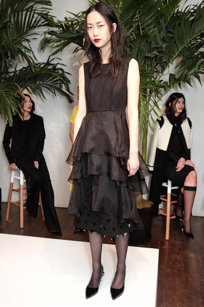 David Batchelor's "Magic Hour" light installation, architect Tadao's bold concrete staircases, and plate tectonics were all inspirations for Youssef's new F/W 2015 collection. The collection this season features smooth matte silk and polished metal (recreate geometric structures and cracks) zig zag appliqués, and his signature triangular and folded details. Delicate black and navy eveningwear made from silk organza layers had graphic accents in red, yellow, and blue jewel tones. A beautiful balance between romantic and sartorial; key pieces includde Italian cashmere coats, wool skirts, and cotton shirting.
